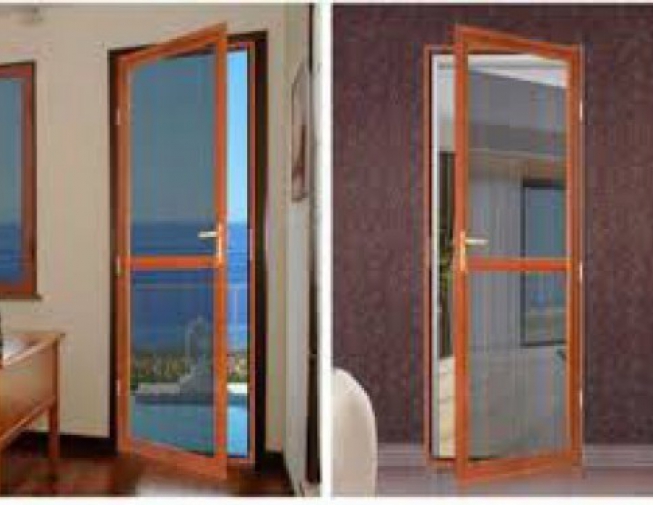 Cửa lưới chống muỗi mở quay màu vân gỗ
